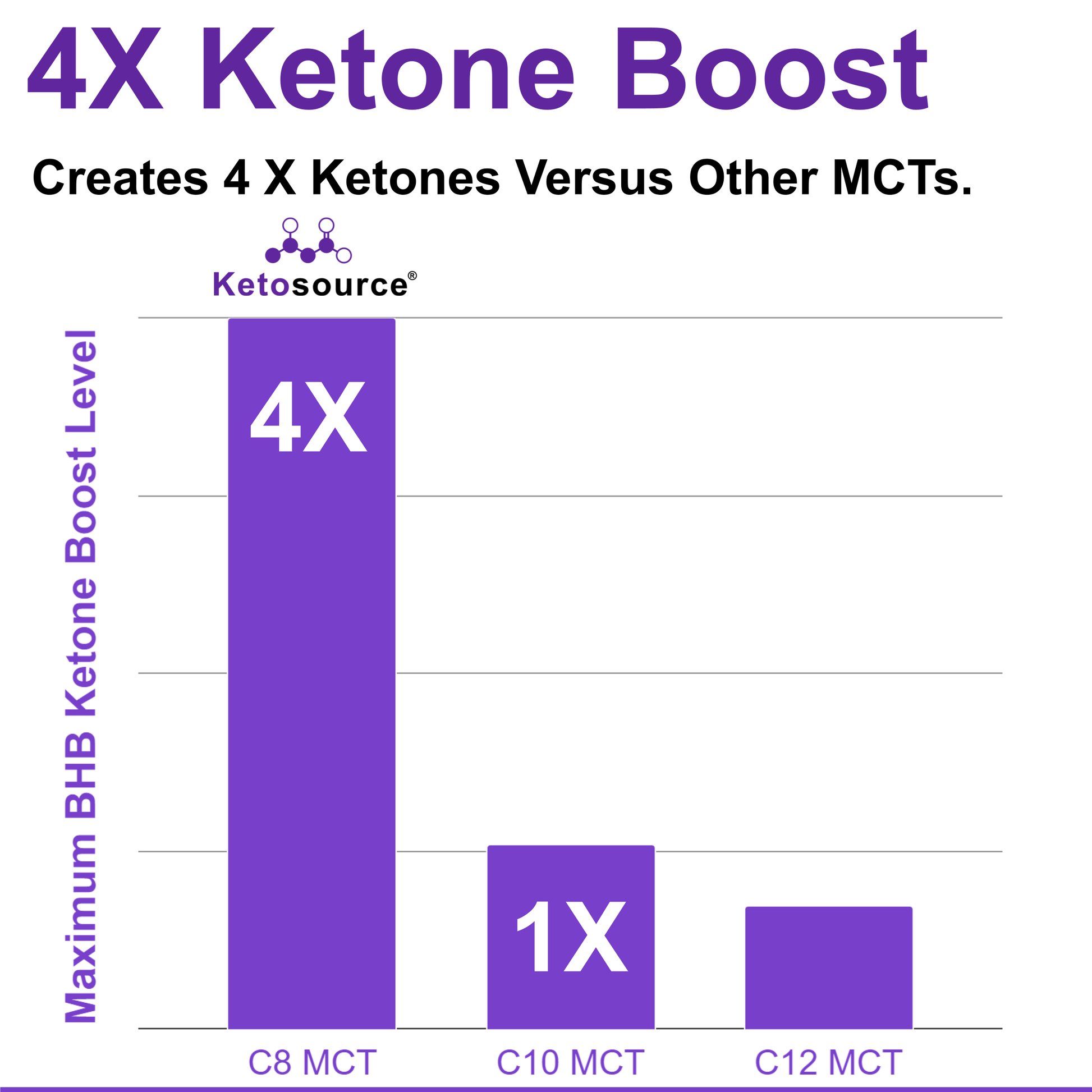 ◉ C8 MCT creates 4 X ketones versus other MCTs like C10 and C12.